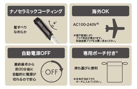 粒子が細かいナノセラミックを配合し、なめらかな髪すべりで摩擦ダメージに配慮しながらスタイリングが可能です。