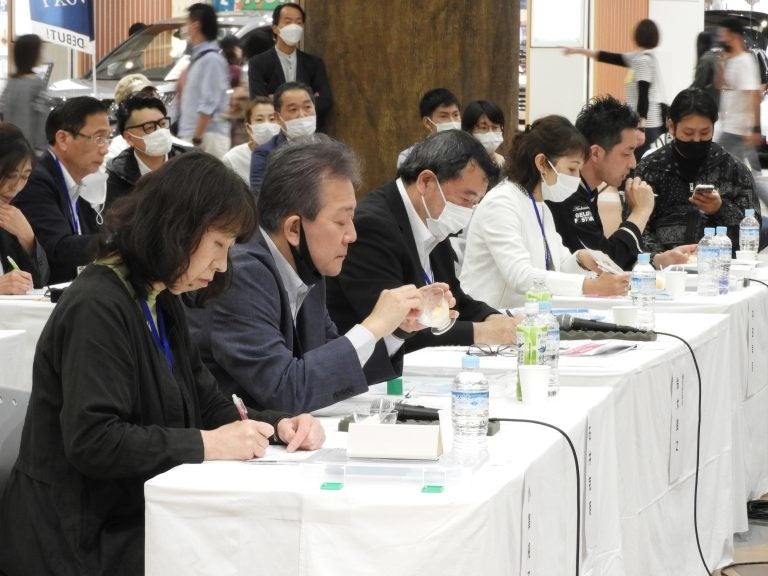 審査員には鈴木俊之(日本ジェラート協会会長)、石井克明(日本アイスクリーム協会専務理事)、平田早苗(ポットラックインターナショナル代表)、神戸寿史社(ロッテ中央研究所アイス研究部課長)、小澤純子(豊玉香料品質保証部部長)、志村美和(旭東化学産業研究所開発課長)、柴野大造(日本ジェラート協会副会長)、森國晶子(日本ジェラート協会理事)、根岸清(日本ジェラート協会認定グランドマエストロ)の各氏があたり、厳正な審査を行ないました。