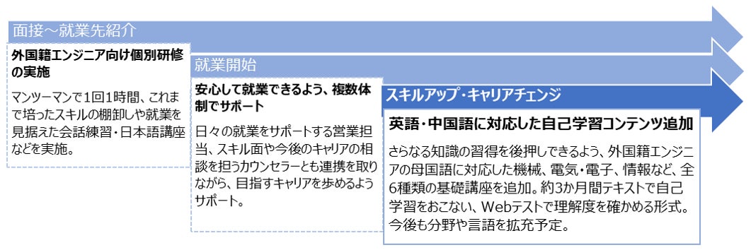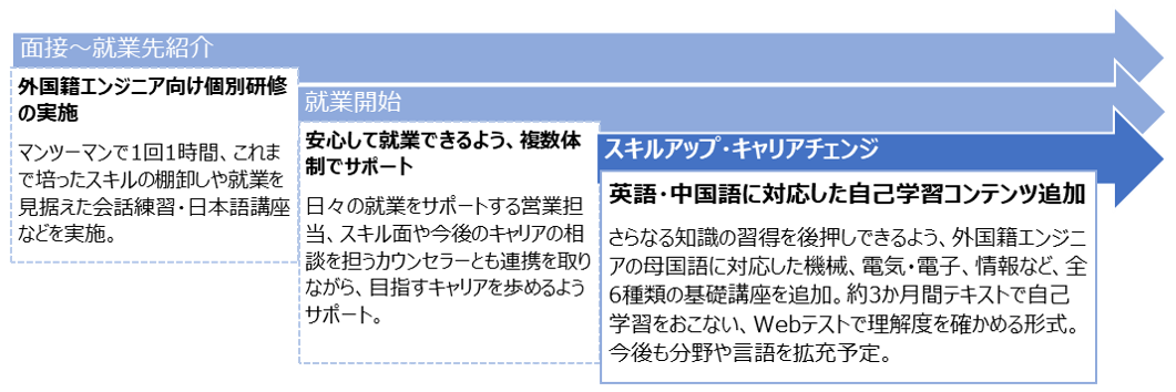 個別研修や学習コンテンツを強化し、日本で働く外国籍エンジニアの定着を支援
