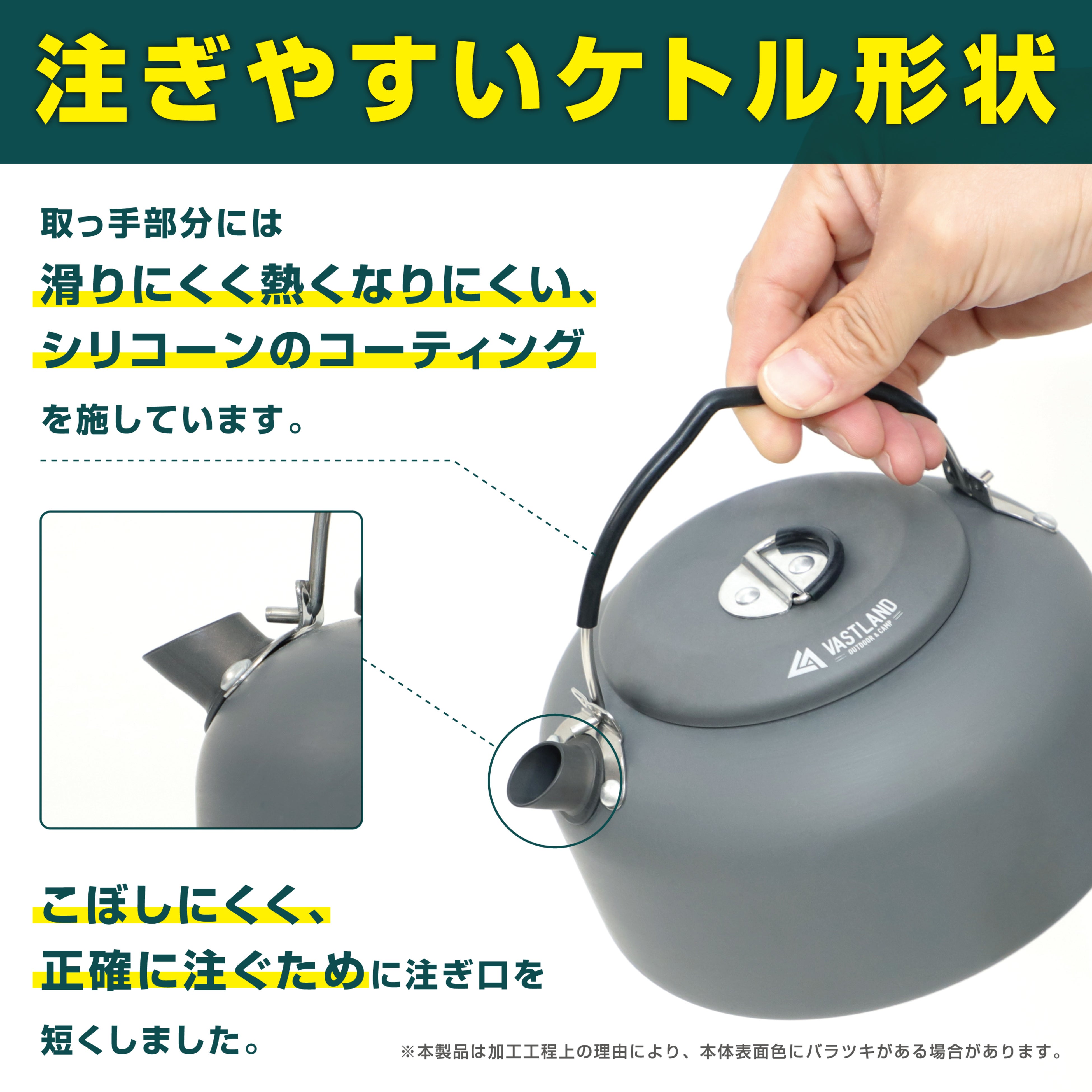 キャンプ・アウトドア用品ブランド「VASTLAND」、アルミニウム素材を採用し、本体表面に硬質アルマイト加工を施した「キャンプケトル(700ml / 1300ml)」を2022年5月21日(土)に発売