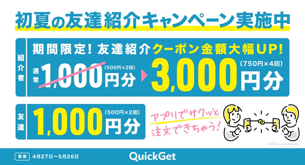 日用品など約10分でお届け、日本初のQコマースサービス「QuickGet」、初夏の友達紹介キャンペーン実施