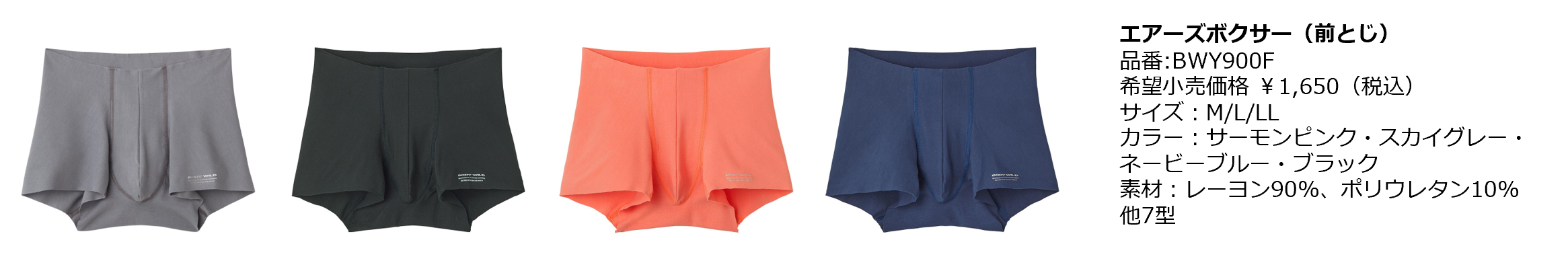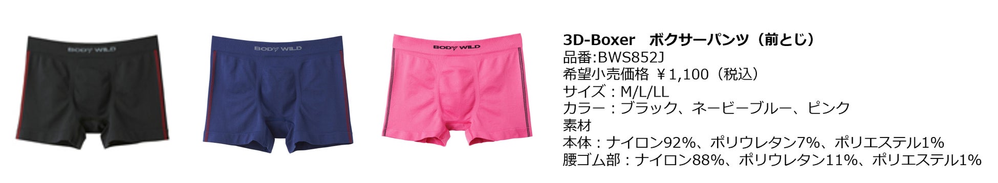 「BODY WILD」史上、最上級にストレスフリーで、はいた瞬間に違いが分かる。さらに着用感だけでなく自由自在なデザインも可能にした新しいウエストゴムが実にクールでカッコいい。カッコよさ、気持ちよさ、どちらもブーストした全く新しいコンセプトのボクサーパンツ。