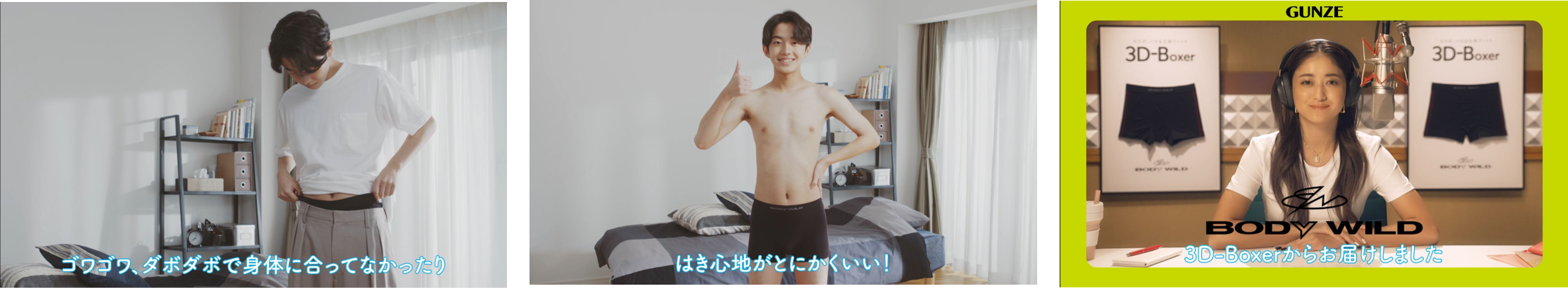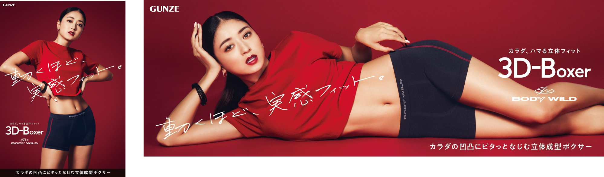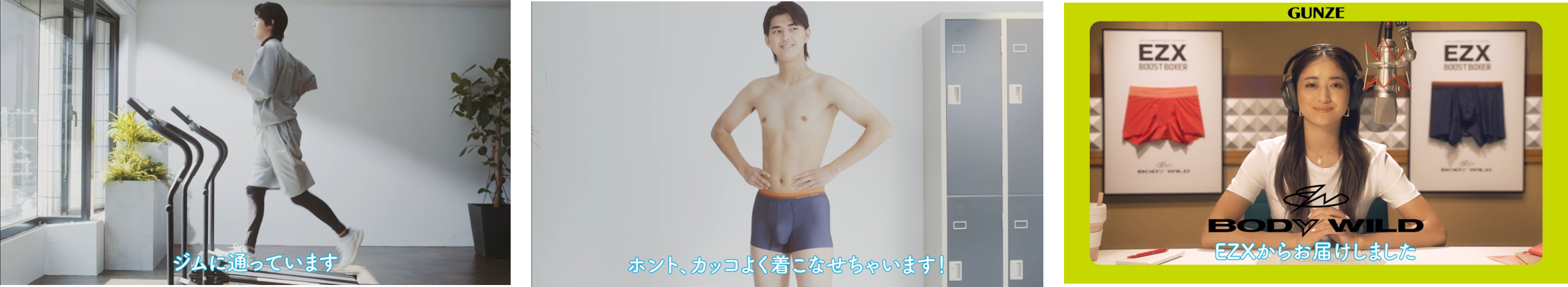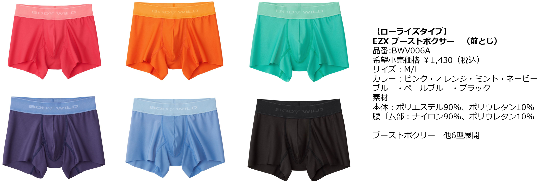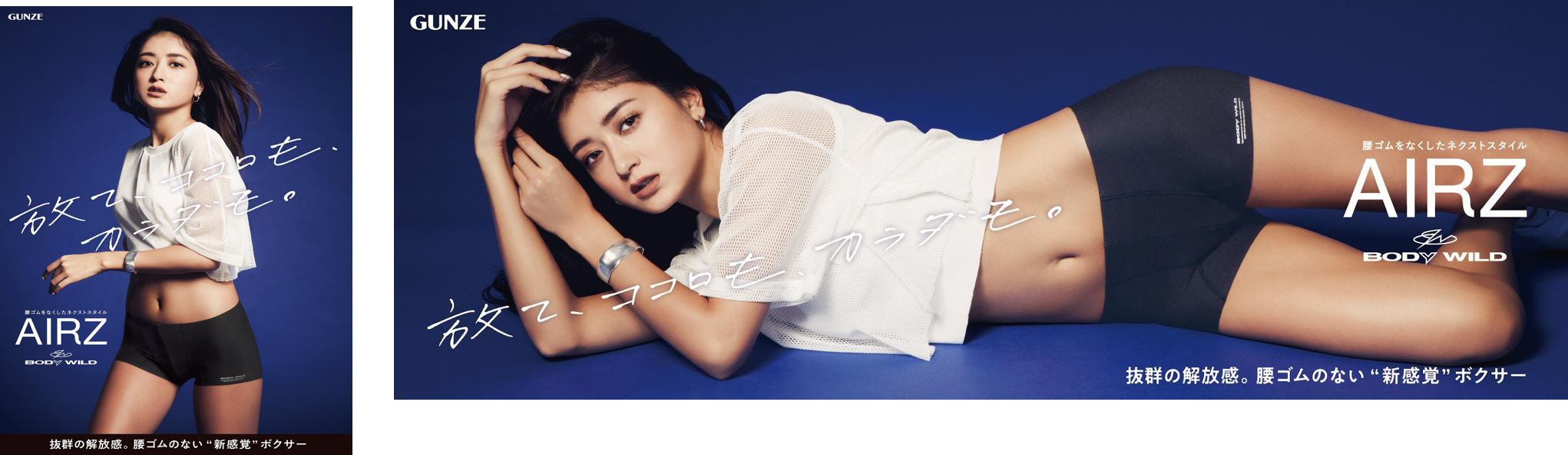 グンゼ株式会社(本社:大阪市北区、社長:佐口 敏康)は、イメージキャラクターを務める“みちょぱ”こと池田美優さんによるメンズインナーウェアブランド「BODY WILD(ボディワイルド)」の新ビジュアルを1月21日(金)に公開します。新ビジュアルは、カッコよさと気持ちよさをどちらもブーストした全く新しいボクサーパンツ「EZX(イージーエックス)」、絶妙なフィット感で快適な着用感を実現した「3D-Boxer(スリーディーボクサー)」、ウエストゴムをなくした新感覚の次世代アンダーウェア「AIRZ(エアーズ)」の3グループで、みちょぱさんがクールな表情で美ボディを披露。人気シリーズ「EZX」では今回新たに登場したローライズタイプをかっこよくはきこなしています。さらに、みちょぱさんがラジオDJ風にパンツのお悩みを解決する新WEB動画「みちょぱんつ相談室」も合わせて公開します。