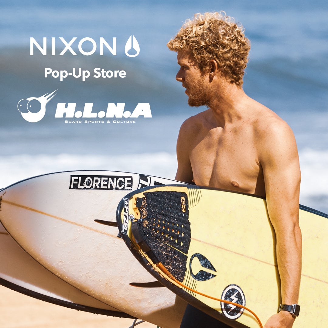 様々なボードスポーツやカルチャーをバックグラウンドに持つ米国NIXONニクソンの日本支社のニクソンジャパン合同会社と、若手選手のサポートやサステナブルな環境へ向けて活動を続けるプロサーファー中村竜氏が、この度アンバサダー契約を締結し、中村氏がディレクションを担う”H.L.N.A”ストアにて、ニクソンのPOP-UP STOREを初開催することが決定されました。