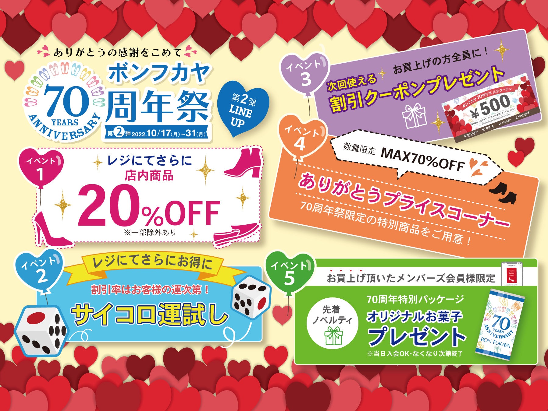 【今年で70周年】ご好評につき第2弾!福岡老舗・靴のボンフカヤが「創業70周年祭」を10月17日(月)~10月31日(月)まで開催