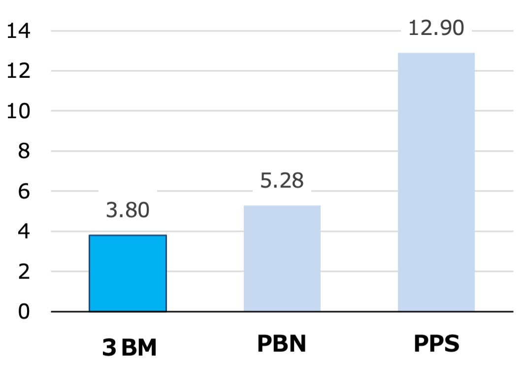 3BM® 樹脂は、PET樹脂をベースに、CMP(Chemical Mechanical Planarization)用リテーナーリングに最適化した材料です。PPS製リテーナーリングと比較して、約3倍の耐パッド摩耗性を有しています。交換頻度を大幅に低減し、生産性の向上に貢献することができます。また、最先端CMP工程にも使えるように製造工程ではこれまでにないレベルの「超クリーン化」を実現しました。