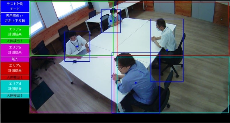 付属のUSBカメラで撮影した画像をAI解析し、特定エリアの人体有無を出力します。