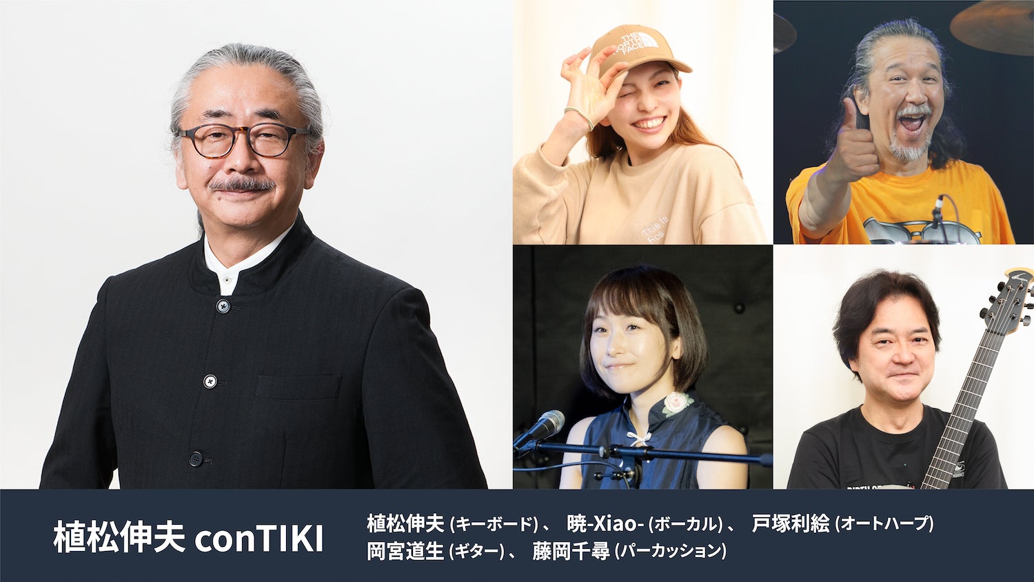 con(with)-TIKI(知己)という名の通り、植松伸夫と気心の知れた仲間達によるバンド「植松伸夫 conTIKI(コンチキ)」。