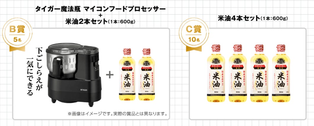 B賞(5名)タイガー魔法瓶 マイコンフードプロセッサー+ボーソー米油600g 2本セット