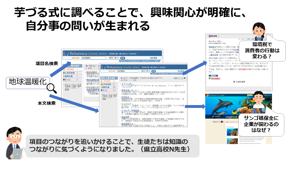 子どもたちの「生きる力」をつくる、良質な知識として知られる百科項目の中の記事は、客観的な事実に基づき、他の項目との関連性を示して書かれているので、1つの項目を糸口にどんどん探究が深まります。