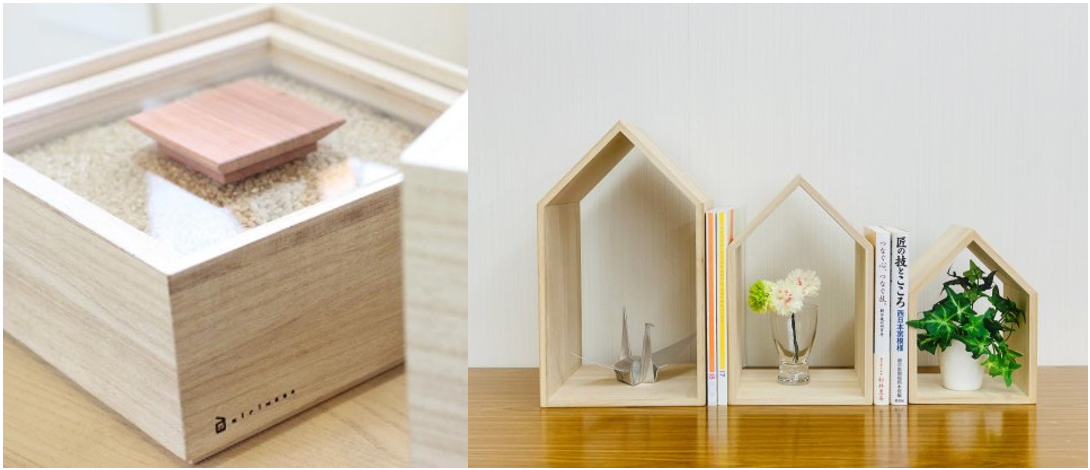 (左)米びつ 【kome-bitsu】天然生活 / (右)本の家 【Book House Nest】