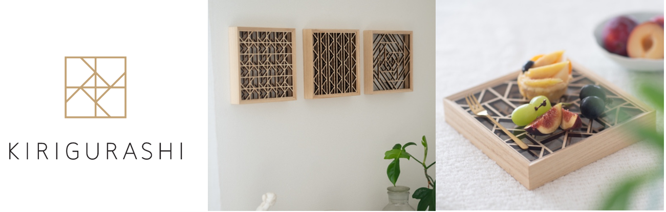 この度、事業展開をスタートさせる「KIRIGURASHI」はこれまでのアプローチをより一層アップデートし、桐箱づくりの伝統技術を、人々の暮らし全体へと用途を拡張させた全く新しいインテリアエレメントです。美しい模様を彫り込んだ「桐箱タイル」を複数組み合わせることで、住居や商業施設等における装飾建材として、また飲食店やご自宅で料理を盛り付ける「桐箱プレート」としてご活用いただけるプロダクトとなります。