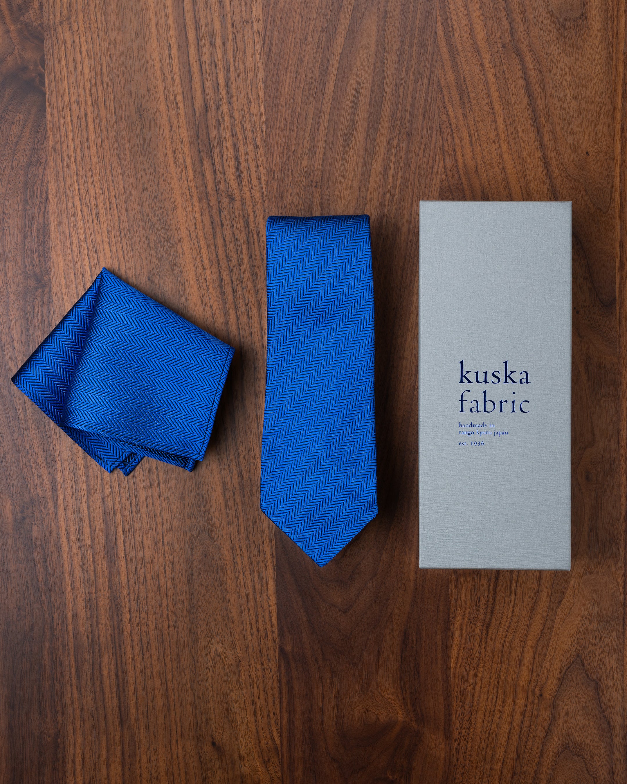 生産数:限定30本 価格:ネクタイ 39,600円(税込)チーフ15,400円(税込) カラー:丹後ブルー