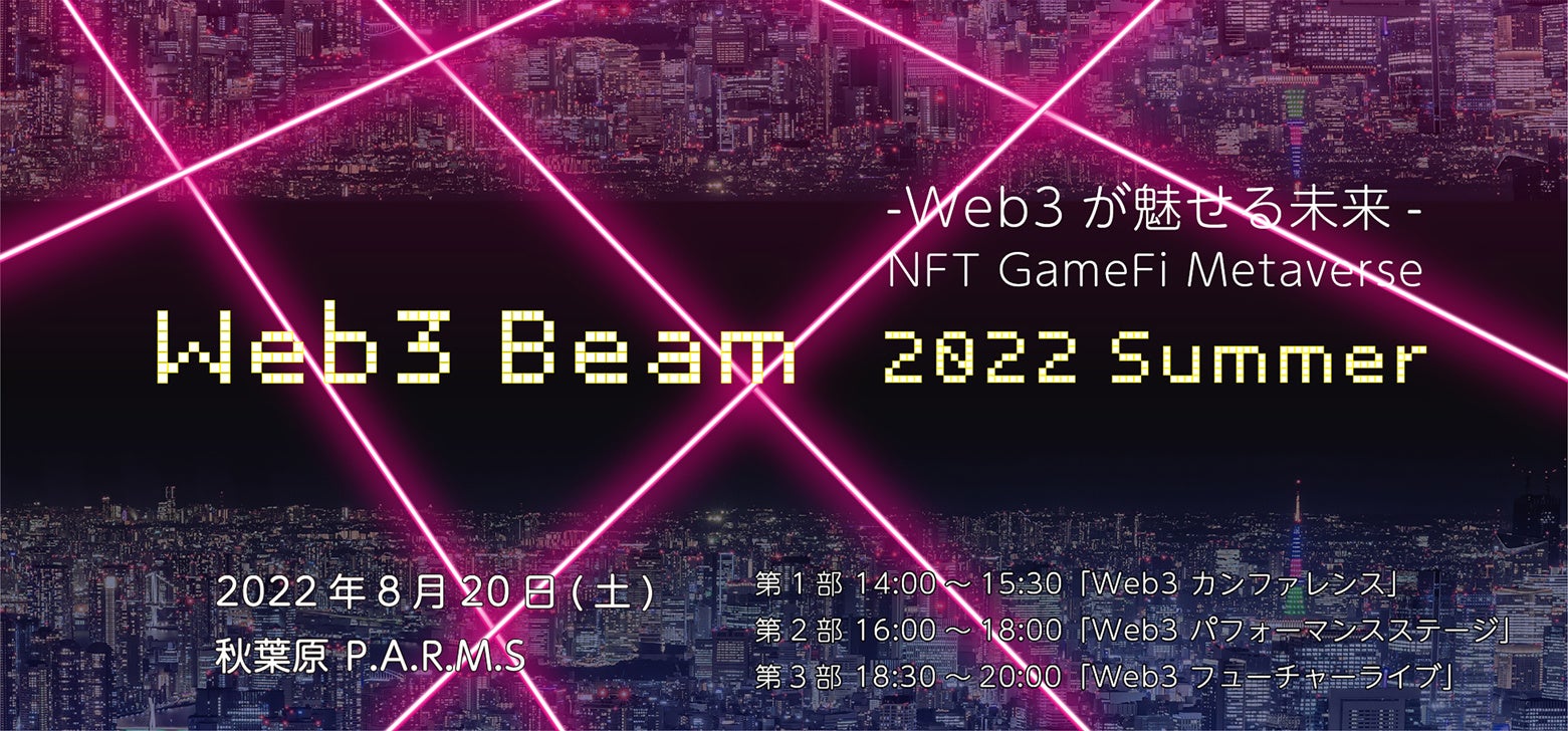 「Web3 Beam 2022 Summer-Web3が魅せる未来-」を8月20日(土)に秋葉原で開催いたします。