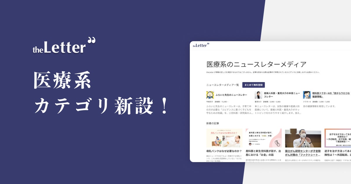 「theLetter」に医療系カテゴリが新設!医療記者の岩永直子氏、小児科医ふらいと先生らも参画