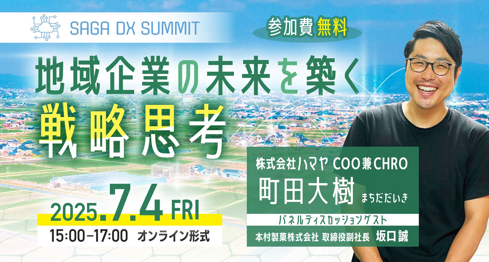 SAGA DX SUMMIT Vol.4 開催のお知らせ[7月4日(金)](事前申込制)〜 特別講師は町田大樹氏(株式会社ハマヤ/COO兼CHRO) 〜