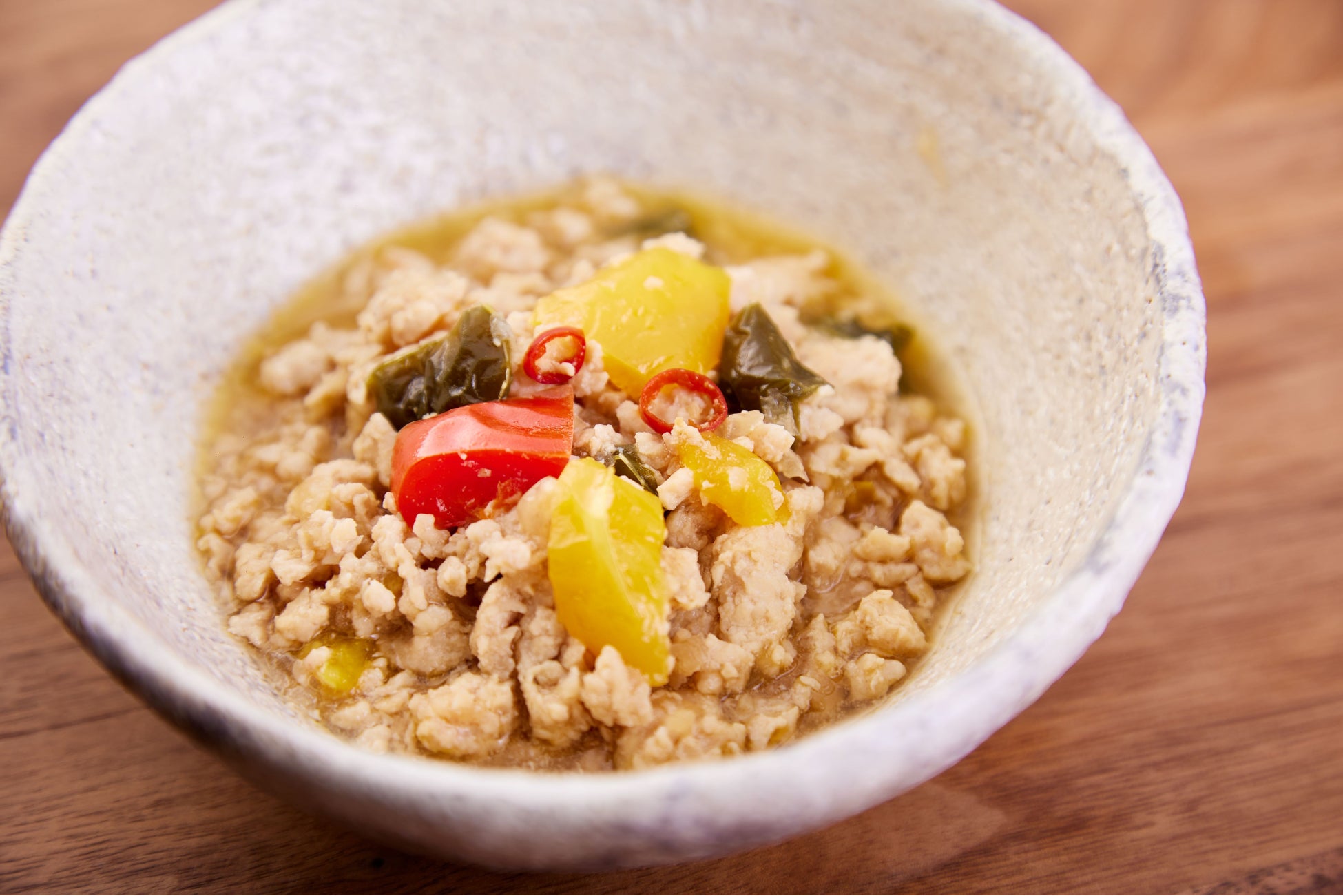 ボディメイクには欠かせない鶏むね肉ですが、パサつきやすいのが難点。ひき肉にして他の具材や調味料と一緒に調理することでパサつきも気にならず飽きずに食べられます。