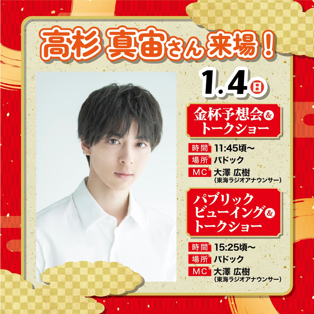 高杉真宙さん来場!1/4(日)はJRA中京競馬場へGO!