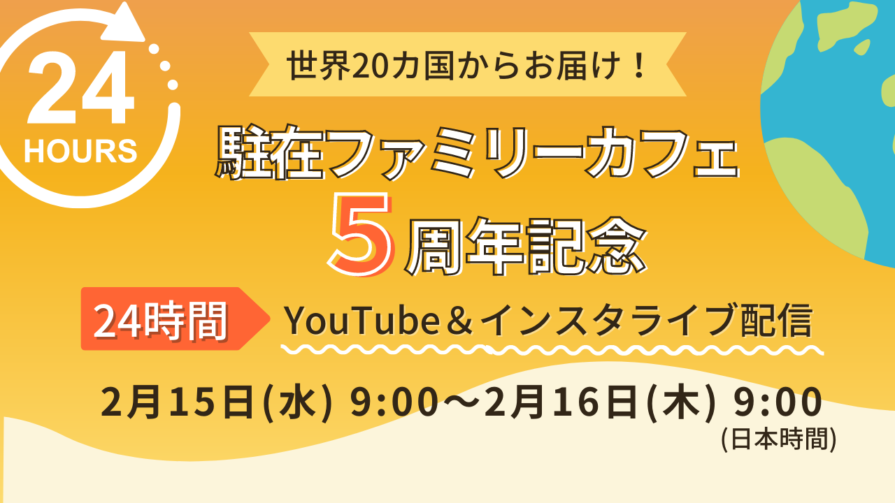 「駐在ファミリーカフェ」はおかげさまで5周年!世界20カ国からつなぐ24時間オンラインライブイベントなど、記念企画を実施します