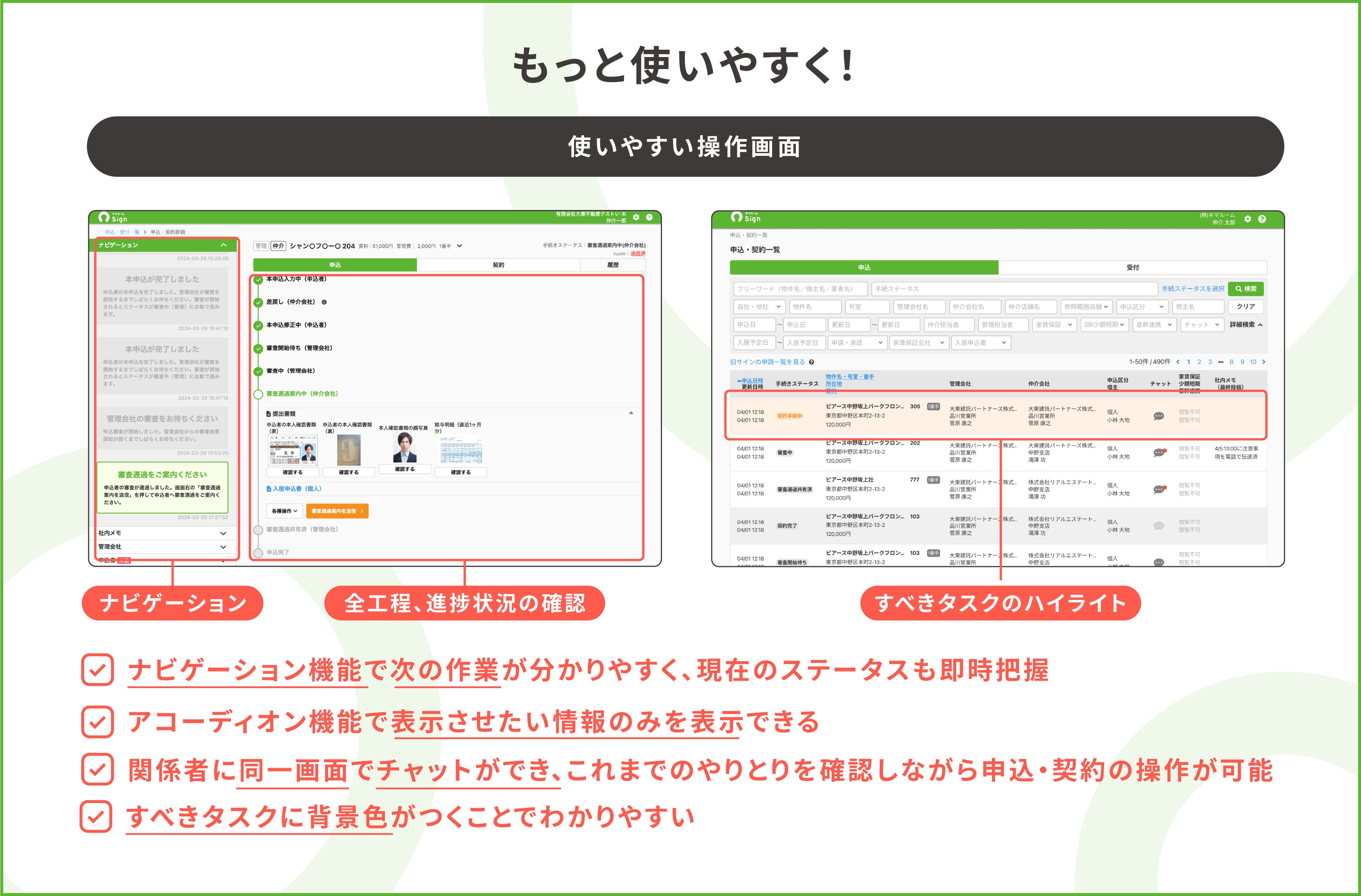ポイント②不動産会社様や申込者様にとって使いやすい機能が追加、より効率的な電子手続きが可能に