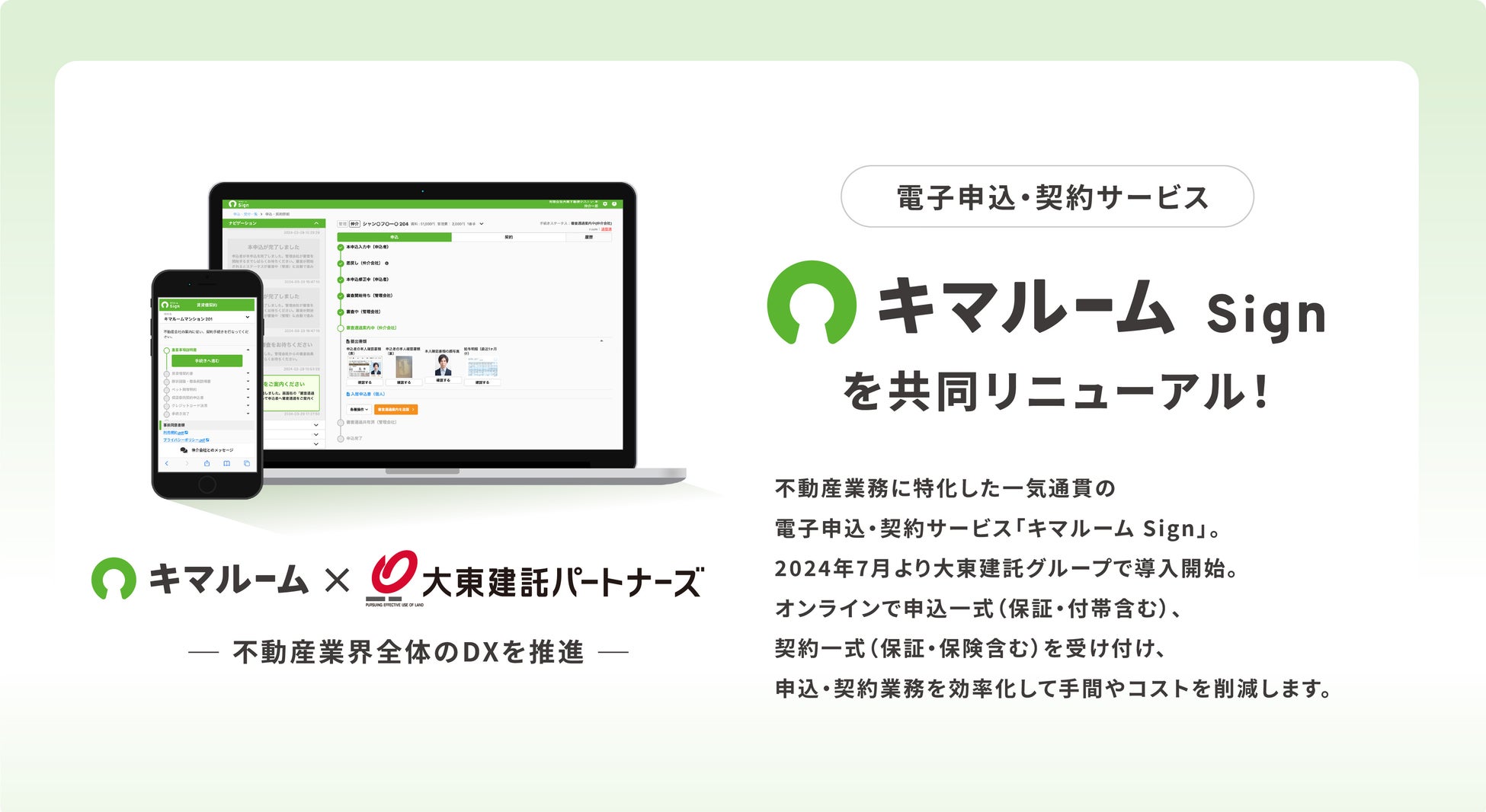 大東建託グループ 電子申込・契約サービス「キマルーム Sign」の共同リニューアルにより不動産業界全体のDXを推進