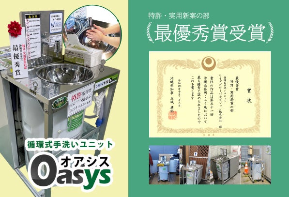 2022年10月、3年ぶりに開催された沖縄県内の一大イベント『沖縄の産業まつり』にて、ワイズグローバルビジョン株式会社の『循環式手洗いユニットMYZ Oasys®』が、その機能や出荷実績等が評価され、第51回 県発明くふう展特許・実用新案の部最優秀賞である県知事賞を受賞。