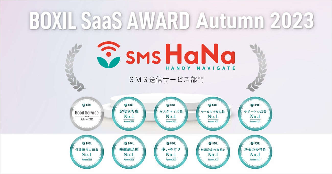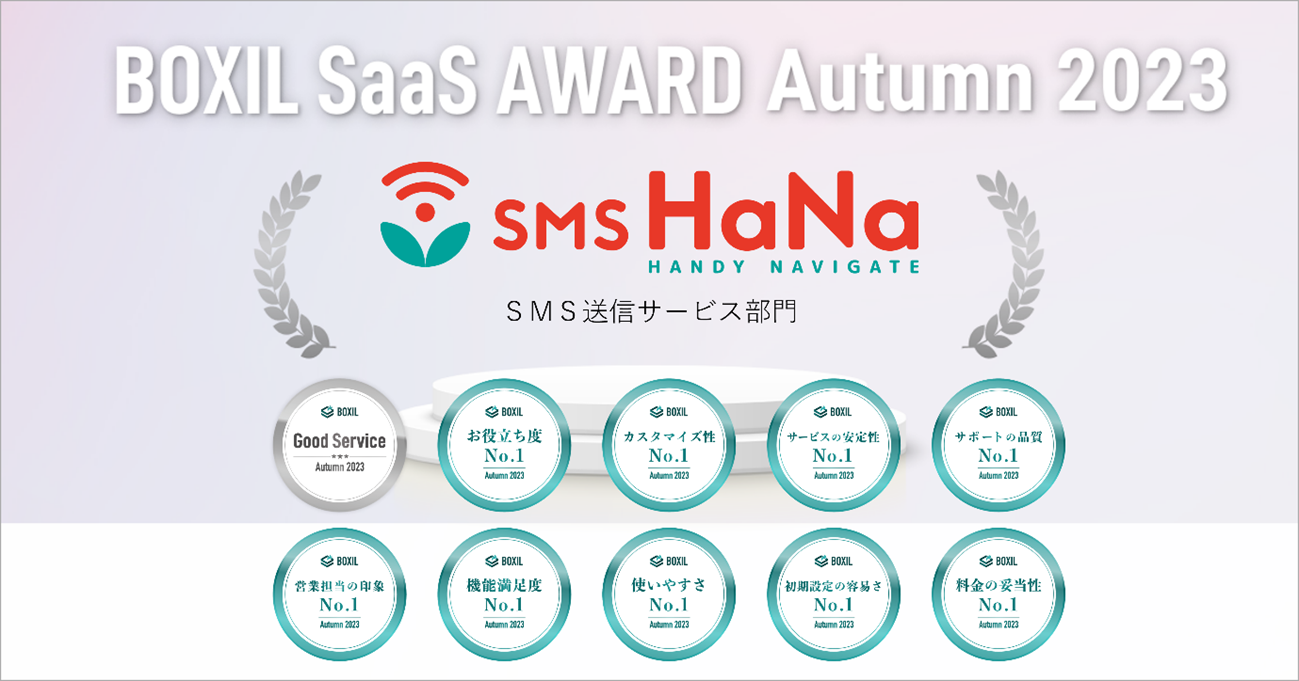 SMS HaNa、「BOXIL SaaS AWARD Autumn 2023」 SMS送信サービス部門で「Good Service」ほか9つのNo.1に選出