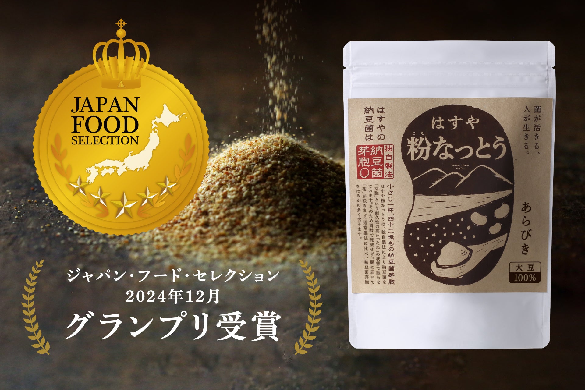 「四国阿波はすや」(運営会社:有限会社ハス商会、徳島県勝浦郡)が製造・販売する「はすやの粉なっとう」が、一般社団法人フードアナリスト協会主催の「第82回ジャパン・フード・セレクション」において、初エントリーで最高位の『グランプリ』を受賞しました。