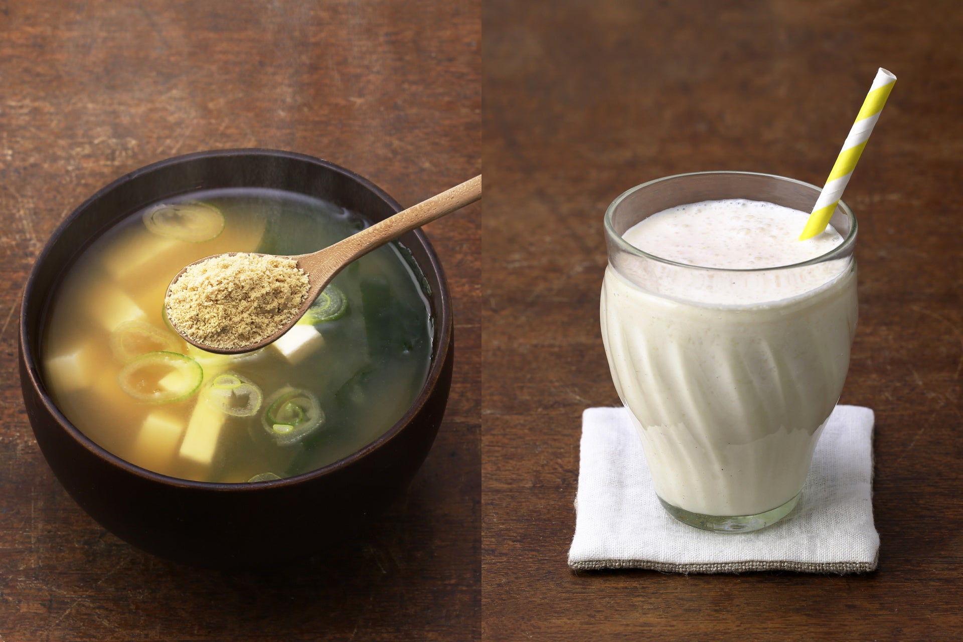 粉末化しているため、サラサラした質感で、納豆のにおいも控えめな「はすやの粉なっとう」。手軽にふりかけるだけで、どんなお料理も納豆菌がたっぷりの「菌活食」に早変わりします。お味噌汁や豆乳などの飲み物に混ぜたり、そのままご飯やトーストに振りかけたりしても美味しくお召し上がりいただけます。