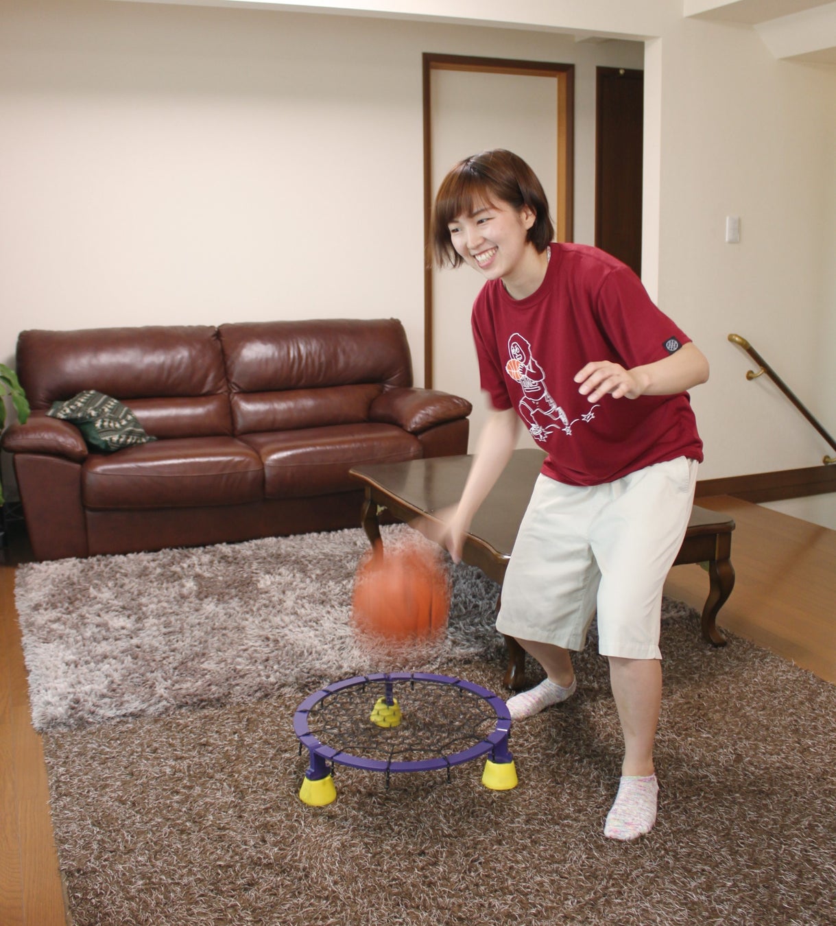 そこで2016年に新規事業として自社でトランポリンを改良した「エアドリブル」という商品を販売することに至りました。トランポリンでは振動や音や振動が大きかったので、実際の弾ませる感覚に近づけつつ、音を低減させるためにゴムネットに変えたり、室内のフローリングでの階下への振動を低減するために特別なウレタンクッションを装着するところ等に大変苦労しました。