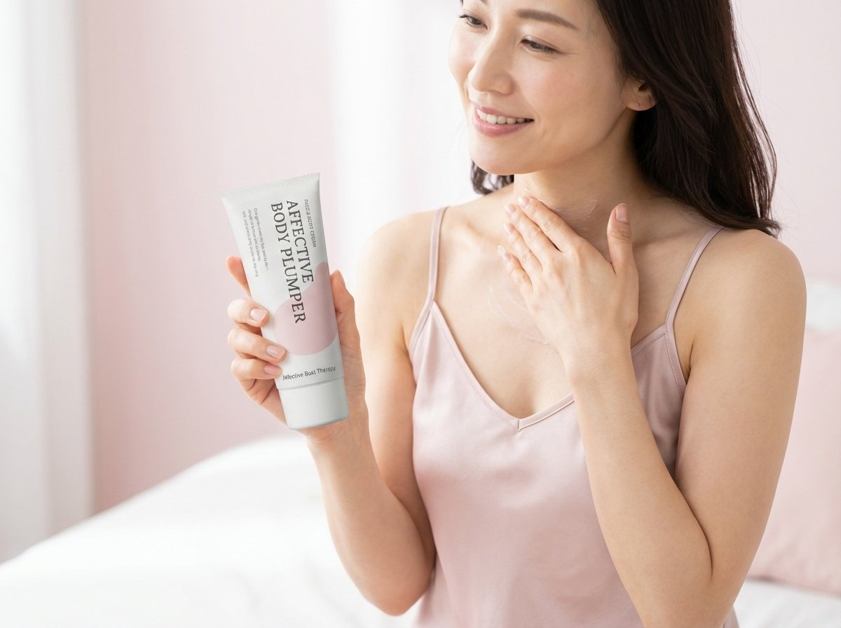 春から夏にかけて、洋服が軽やかになるほど印象を左右しやすいのが、顔まわりだけではなく首・デコルテ・バスト上部の見え方です。年齢を重ねると、肌のハリ感だけでなく、痩せ・削げ・たるみによって上半身全体が寂しく見えやすくなることに着目し、アフェクティブボディプランパーはそうした大人女性の変化に寄り添うケアアイテムとして開発されました。