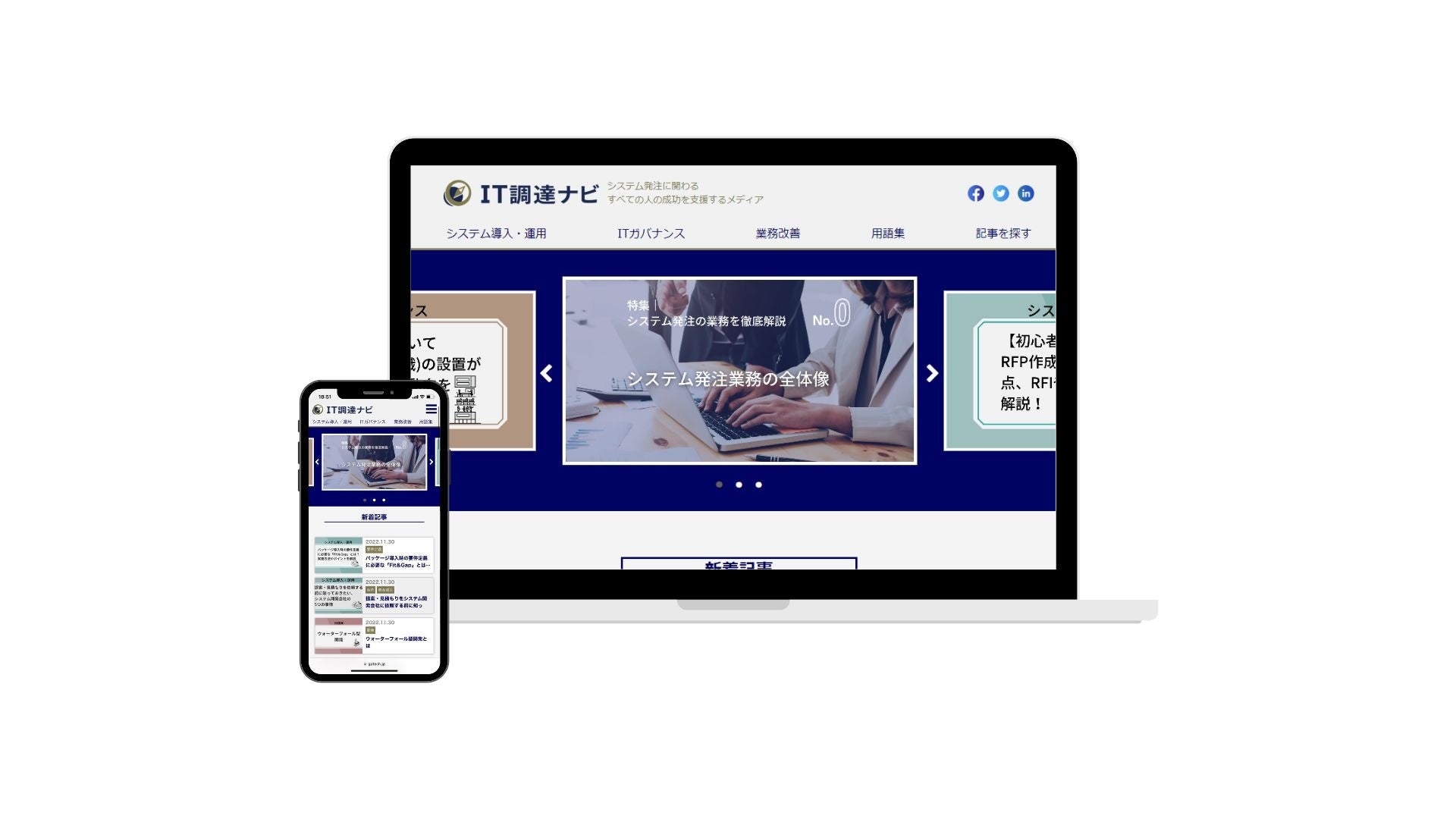 IT調達ナビでは、システム導入・運用に関する記事をはじめ、ITガバナンスや業務改善、ITに関する基礎用語解説などのコンテンツを掲載しています。