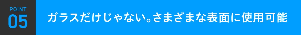 利用シーンは様々、ガラスだけでなく「曇りガラス」「⼤理⽯」「タイル(⽬地幅は5mm以内推奨)」など