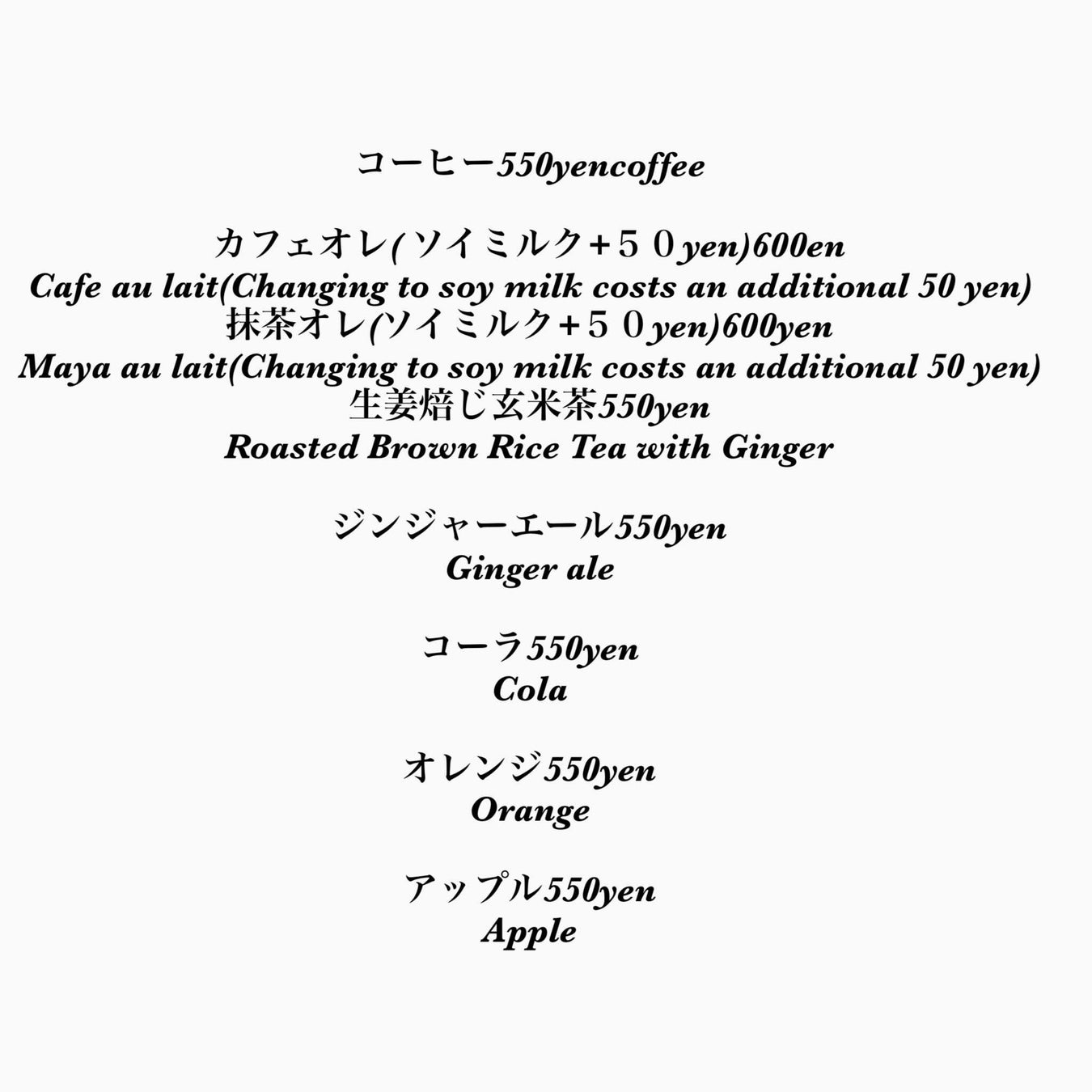 <提供中メニュー例>