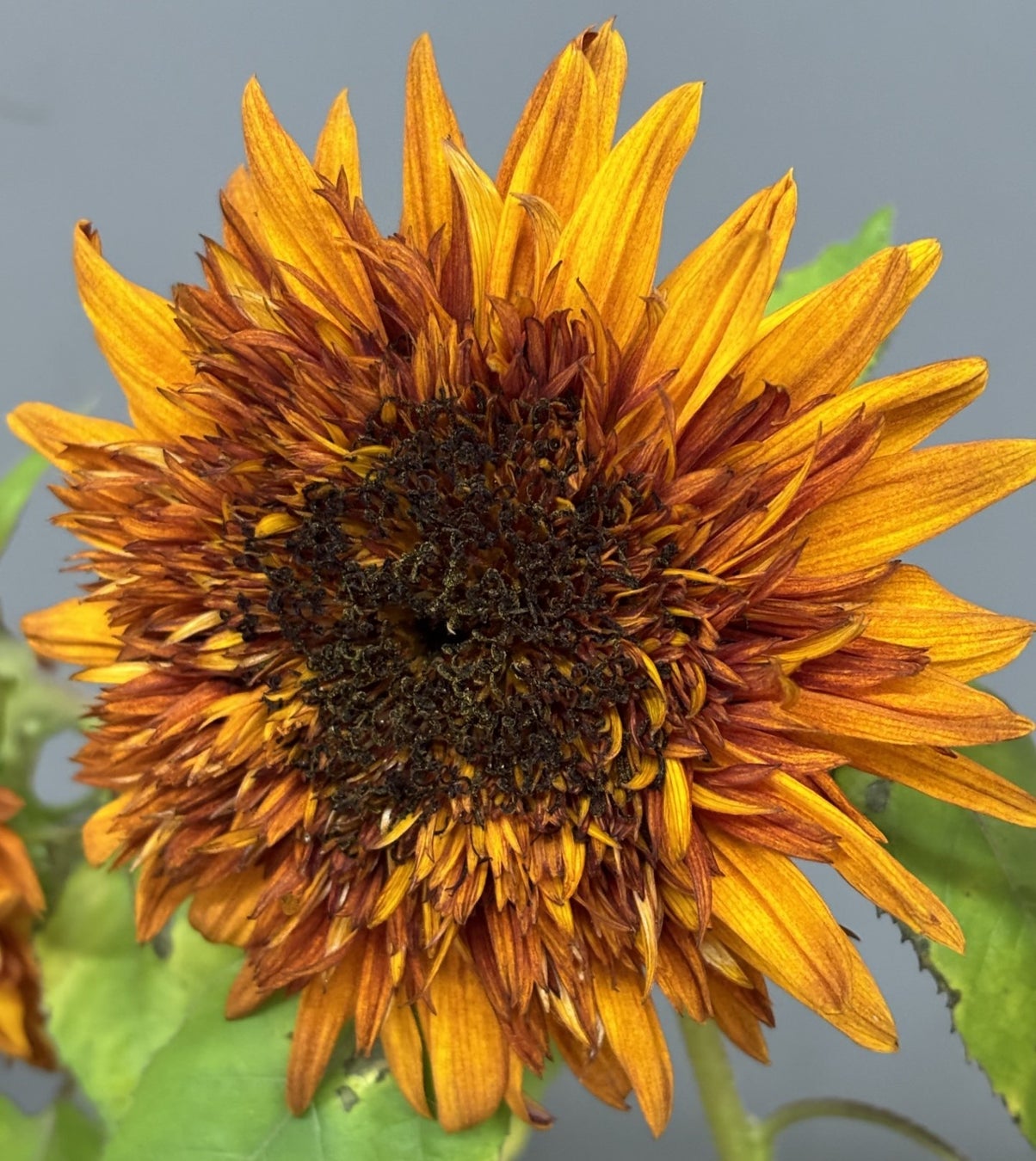 花き生産35年、山田様はヒマワリのブランドとして業界に名を馳せています。茶色の八重は珍しいと取り組んだダージリンは、紅茶の茶葉の色がにじみ出るかのような絶妙な花弁模様が特徴です。山田様のご出荷物は、きれいに品質が揃っているばかりでなく、その荷姿は細部まで行き届いた気配りが感じられ、好評を得ています。