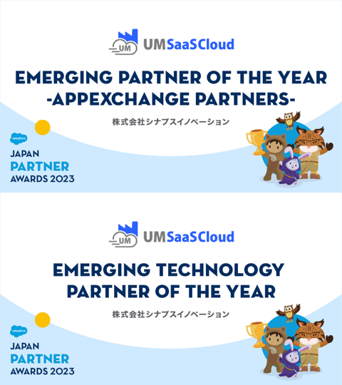 「Emerging Technology Partner of the Year」は、中堅・中小製造業向けのクラウド生産管理システム『UM SaaS Cloud』を開発する上で、Salesforceが提供する先進的なテクノロジーを活用することで開発生産性を向上し、それらがお客様への価値提供に繋がった点を評価いただきました。