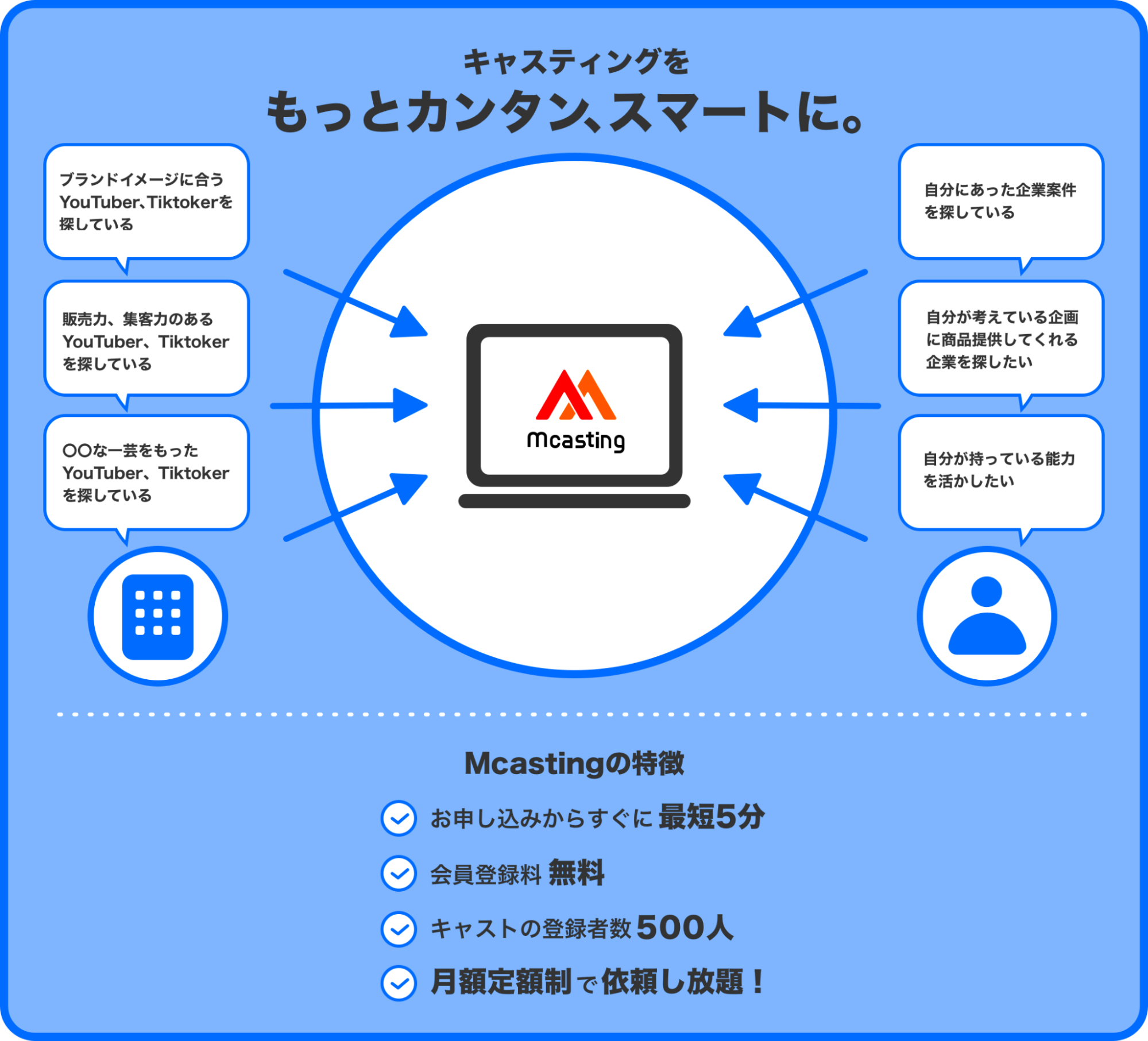 500人以上のキャストが登録しているため、インフルエンサー同士のコラボ相手探しももちろん可能です。