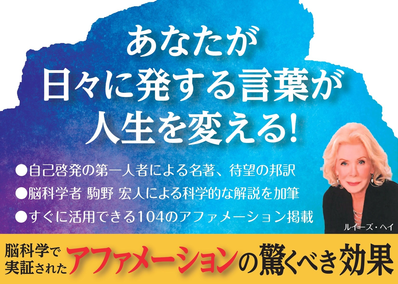 ルイーズ・ヘイの人生は本当に苦難の連続でしたが、彼女は自分自身で学び実践し、自らの人生を素晴らしい人生に変容させていきました。彼女の人生を変えた大きな要因に、毎日肯定的な言葉をくり返す「アファメーション」があります。アファメーションについては多くの本で紹介されていますが、本書では、その背景となる脳科学との関連性も述べています。アファメーションの効果を、科学的な裏付けで納得感をもって理解してほしいと思ったからです。(本文より)