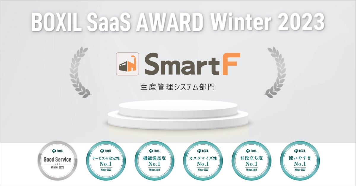 生産管理クラウドシステム「スマートF」、「BOXIL SaaS AWARD Winter 2023」生産管理システム部門で「Good Service 」ほか5つのNo.1に選出