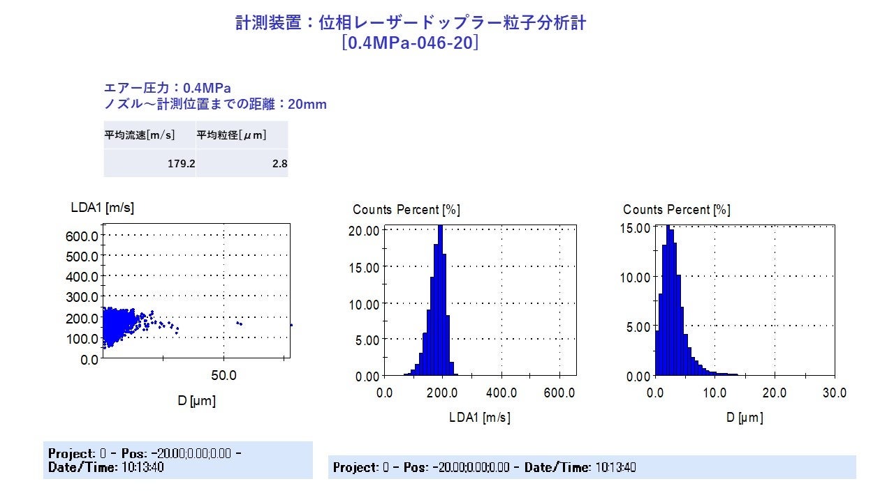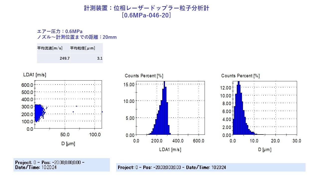 先ず、「位相レーザードップラー粒子分析計」で計測した高速パワーミストの分析結果をお伝えします。