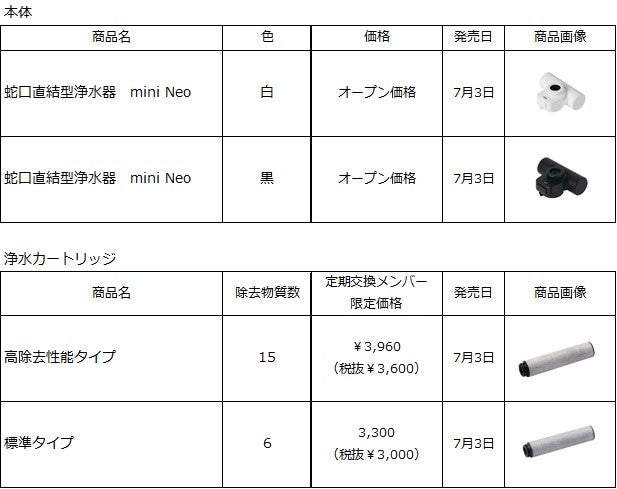 プラスチック使用量を削減し、環境に配慮した蛇口直結型浄水器「mini Neo」 7月3日(月)発売