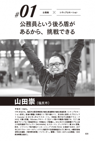 第1章では、著書『日本一おかしな公務員』でも知られる山田崇氏(塩尻市)、「本気すぎるコスプレ公務員“バナナ姫ルナ”」こと井上純子氏(北九州市)を紹介。
