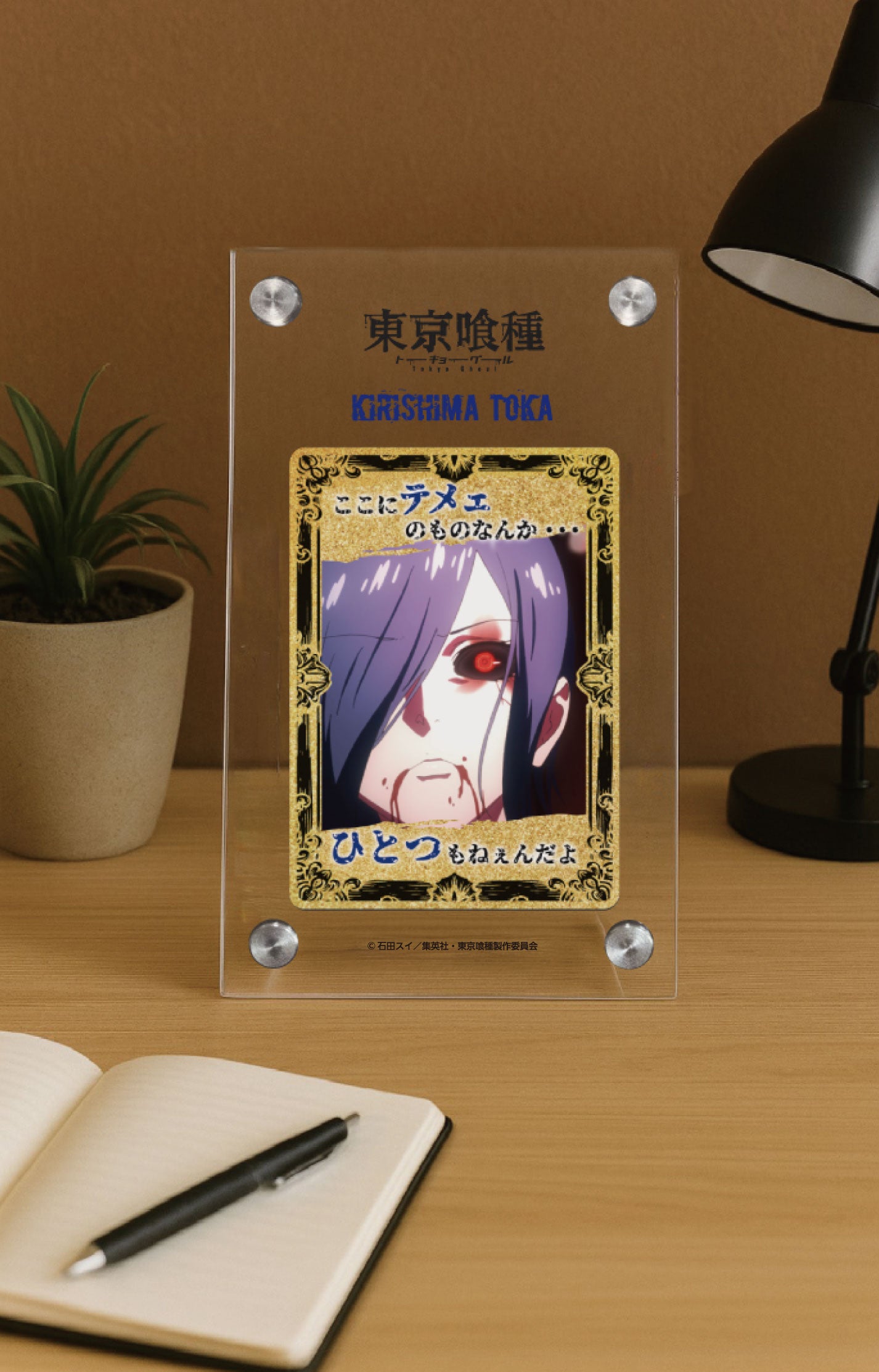 厚みと光沢感のある金属カードに、公式ビジュアルを高精度で両面印刷。