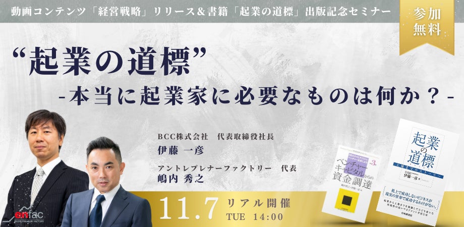 ・セミナータイトル:“起業の道標” ー本当に起業家に必要なものは何か?ー/動画コンテンツ「経営戦略」リリース&書籍「起業の道標」出版記念セミナー