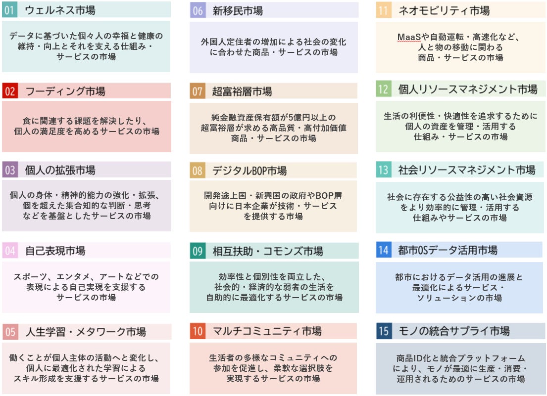 各市場で登場すると考えられる商品・サービスコンセプト例