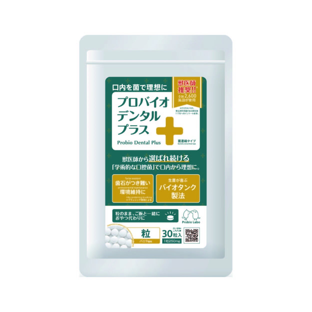 そこで注目されているのが、ペットの「口腔内の菌バランス」を整える新しいケアの考え方。従来の「殺菌して清潔に保つ」というアプローチから一歩進み、サプリメントで善玉菌を補給して口内の悪玉菌が活動しづらい菌バランスに整えることで、口腔環境を健康に保つ手法です。動物医療の現場や専門家だけでなく情報感度の高い飼い主さんの間では、すでに高い評価を受けています。