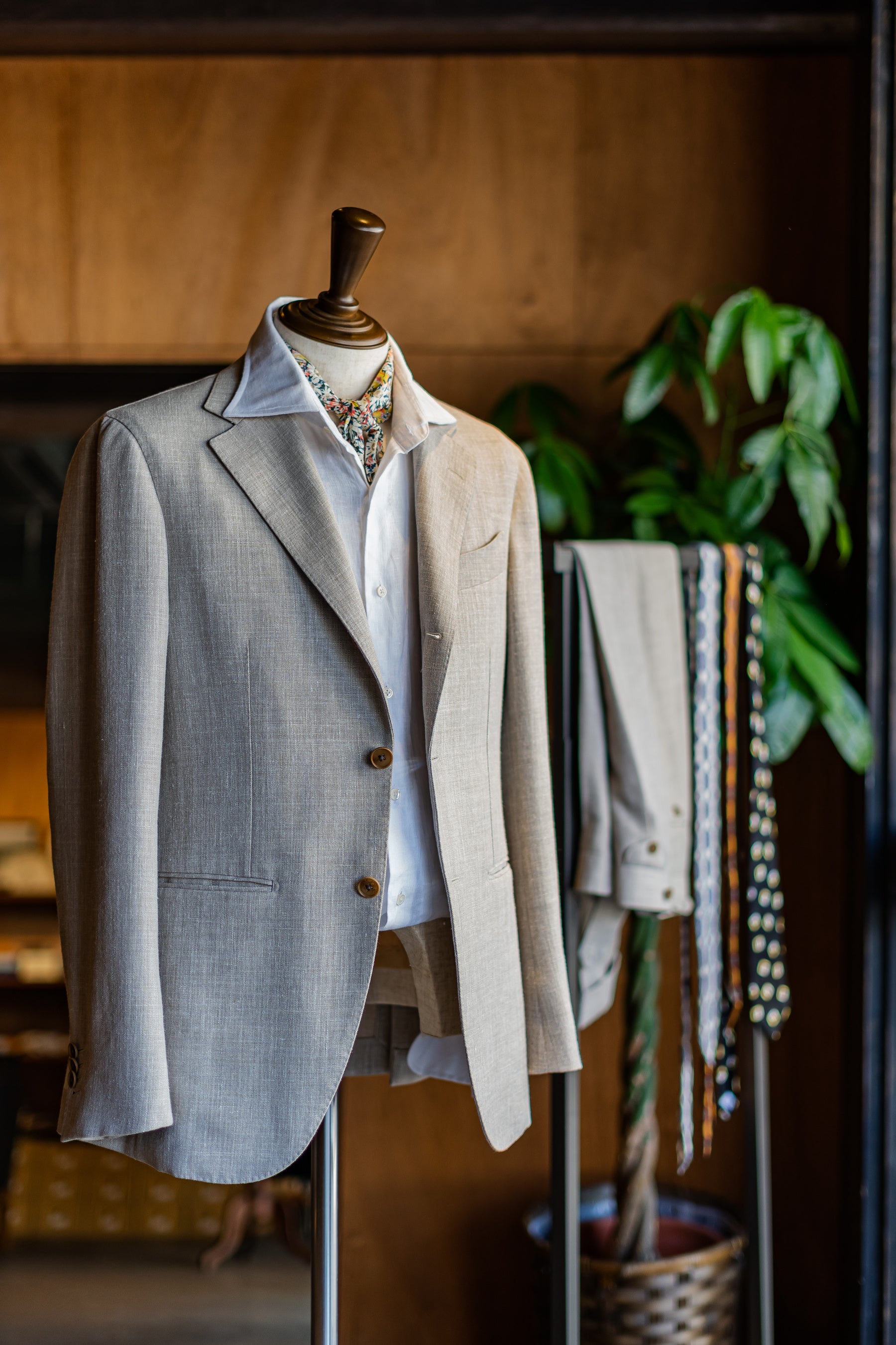 2018年福岡の博多にオープンしたオーダーサロン。「人生最高の日」をテーマに、御新郎様のブライダル衣装をオーダーメイドでお仕立てしています。