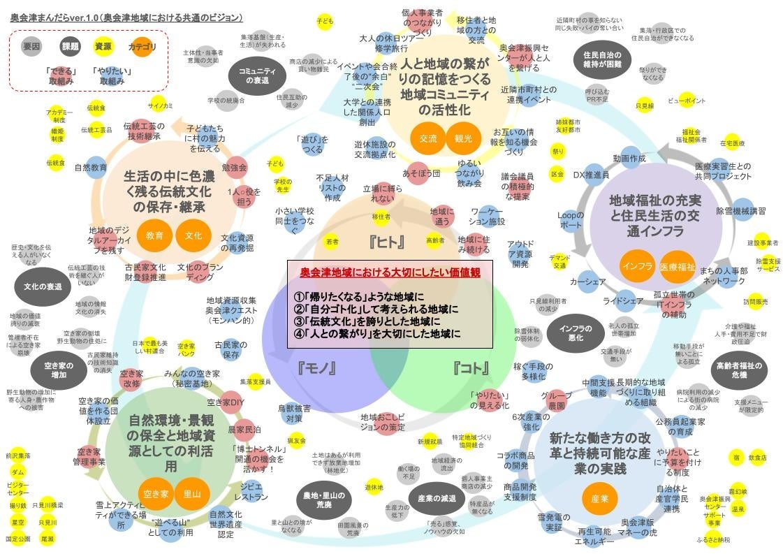 昨年度のまんだらワークショップで、奥会津地域に関わる人たちと作成した、奥会津版まんだらver.1です。