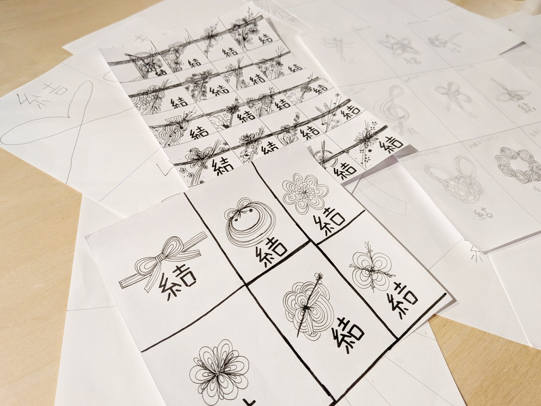 就労支援施設の方に熨斗(のし)のデザインを説明するとき、「ここがこう結び目になってて・・・」と話をしていると「結」という漢字もそのまま入れて描いてくださり、これはいいなということでそのまま採用しました。