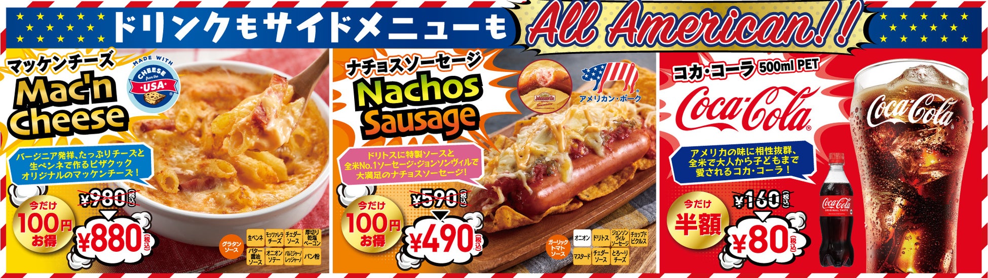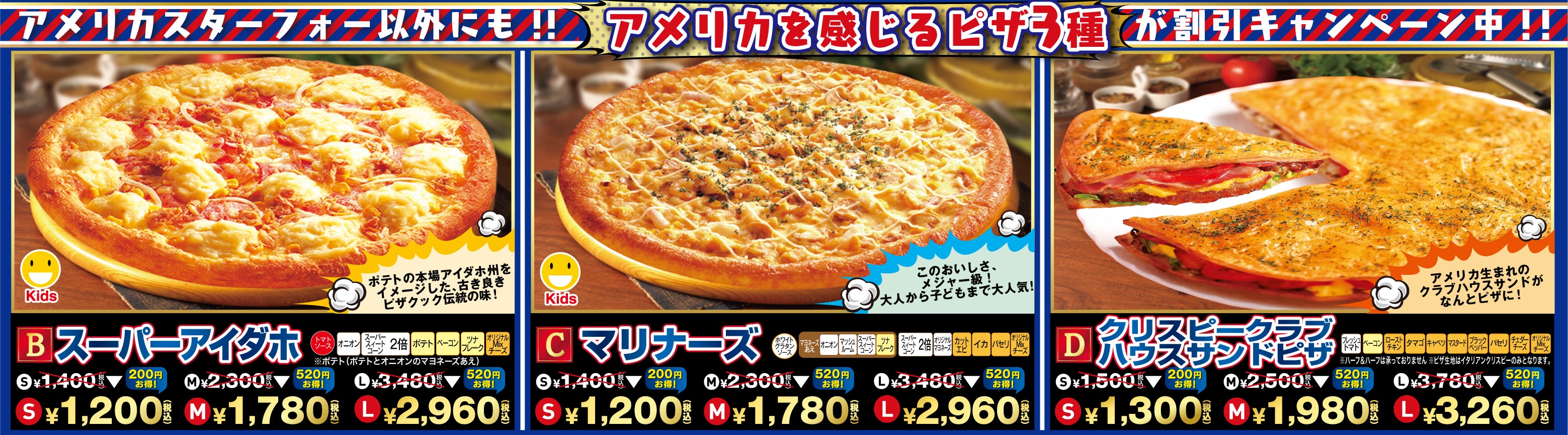 さらにアメリカスターフォー以外にも!アメリカを感じるピザ3種が割引キャンペーン中!